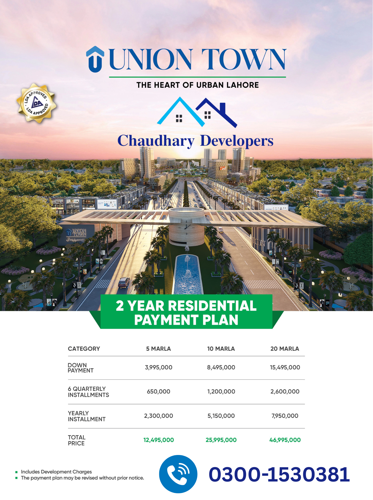 Welcome to Union Town — a visionary master-planned community developed by Union Developers, redefining urban living in the heart of Lahore. Ideally located at the junction of Abdul Sattar Edhi Road and Pine Avenue, Union Town offers exceptional connectivity, modern infrastructure, and premium lifestyle amenities.